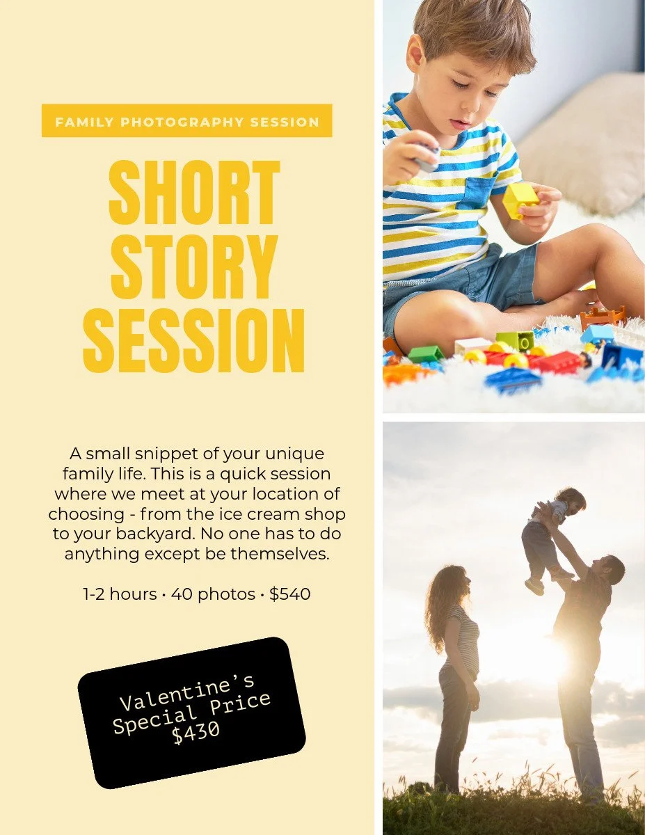 Whether it’s capturing the small, joyful moments of your family or showcasing the heart behind your brand, these sessions are about honest, story-driven photography that feels like you.